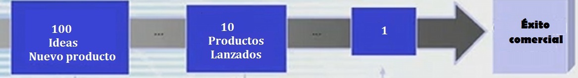 Como dato numérico se puede decir que de 100 buenas ideas, se podrían sacar al mercado unos 10 productos, de los cuales 1 puede tener éxito en el mercado. Aquí habría que definir, qué entendemos por éxito. Consideramos éxito que el producto esté vivo más de un año en el mercado. Hay que tener en cuenta que estos valores concretos dependen del sector, pero sirve para hacernos una idea, más cualitativa que cuantitativa, de la dificultad de conseguir un éxito comercial y de la importancia de generar cantidad y calidad de ideas.